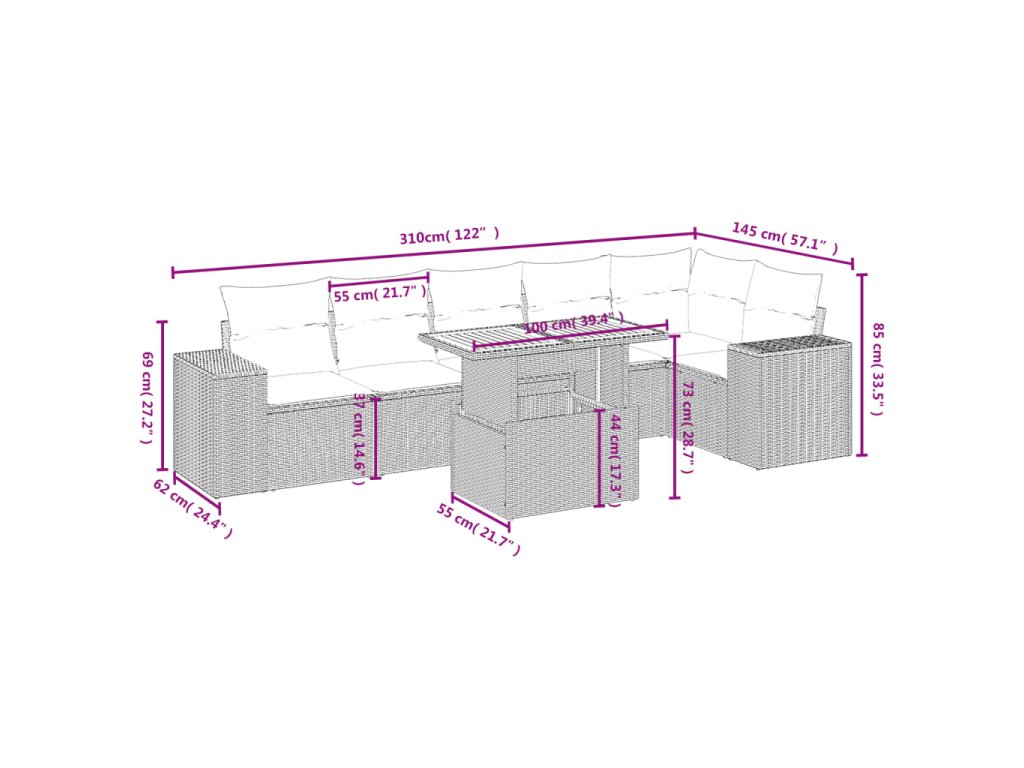 Tato zahradní sedací souprava je dokonalým doplňkem vaší zahrady, terasy nebo dvorku a poskytne vám pohodlné a příjemné místo, kde si můžete povídat s rodinou a přáteli nebo jen tak odpočívat a užívat si pobyt venku.