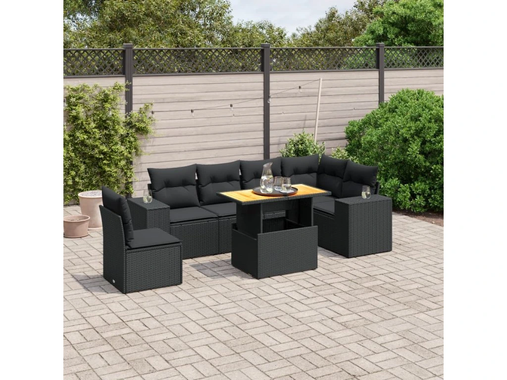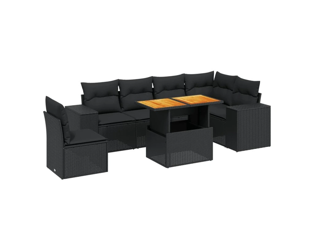 7dílná zahradní sedací souprava s poduškami černá polyratan 3272658