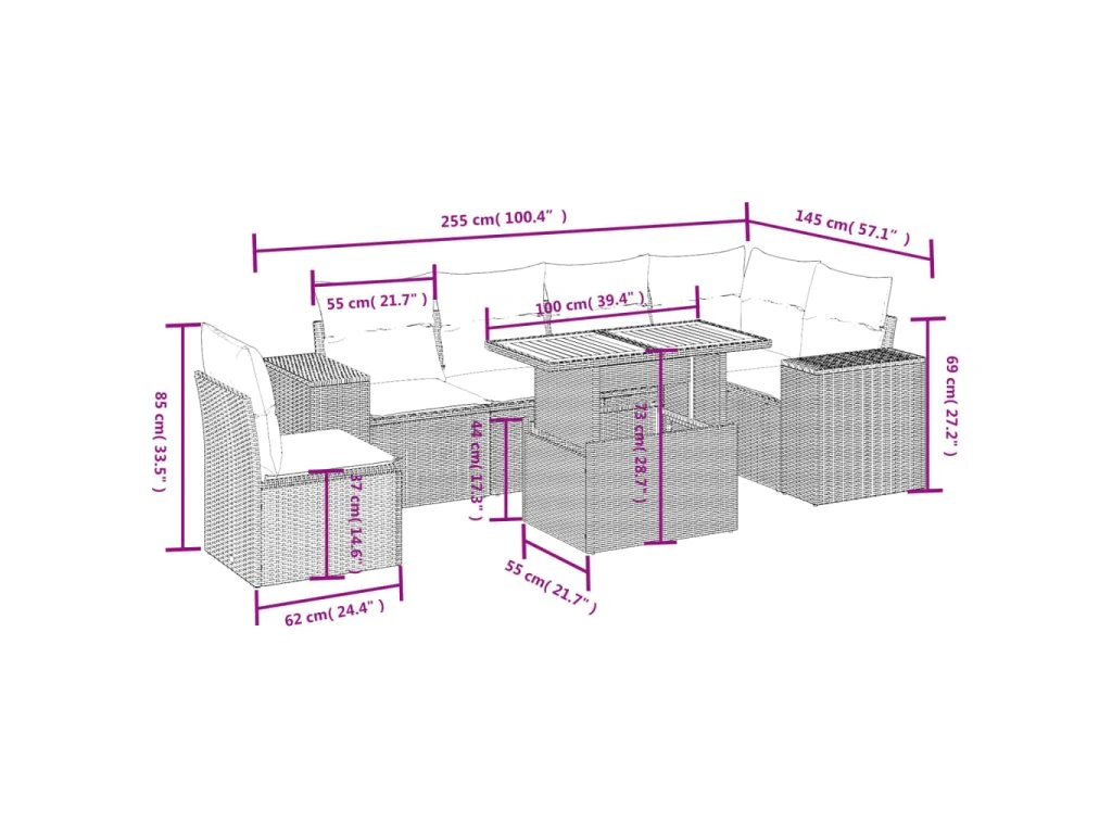 Tato zahradní sedací souprava je dokonalým doplňkem vaší zahrady, terasy nebo dvorku a poskytne vám pohodlné a příjemné místo, kde si můžete povídat s rodinou a přáteli nebo jen tak odpočívat a užívat si pobyt venku.