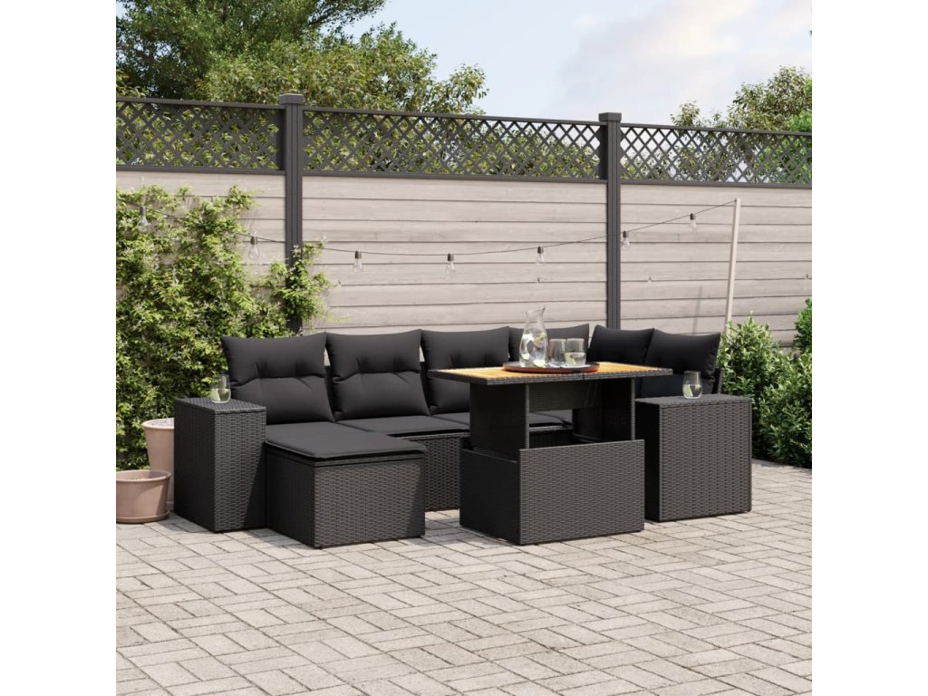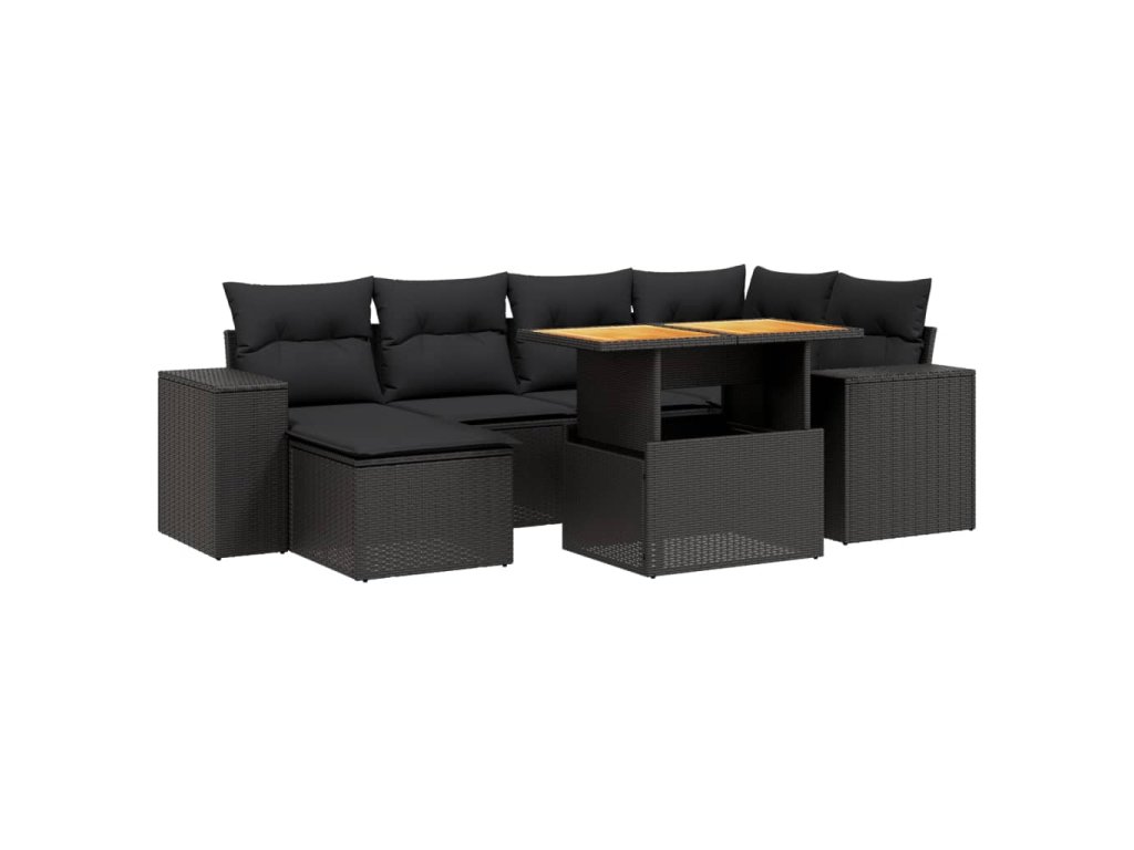 7dílná zahradní sedací souprava s poduškami černá polyratan 3272735