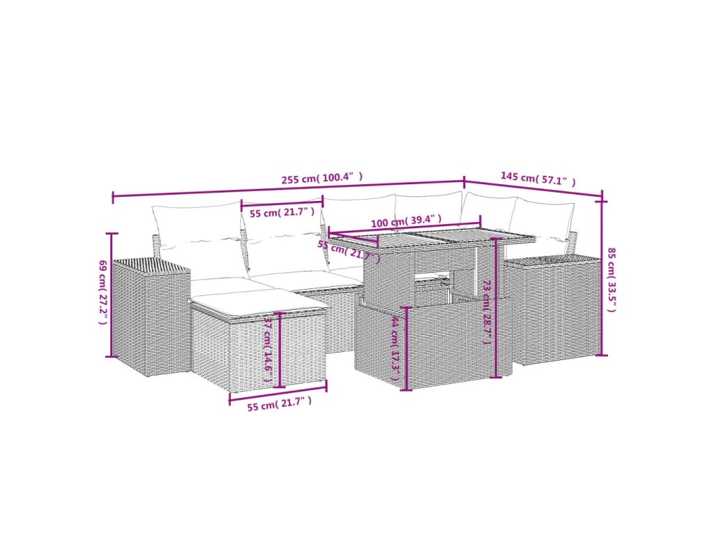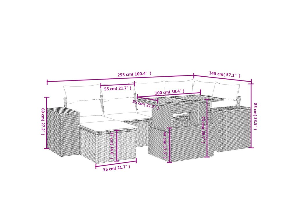 Tato zahradní sedací souprava je dokonalým doplňkem vaší zahrady, terasy nebo dvorku a poskytne vám pohodlné a příjemné místo, kde si můžete povídat s rodinou a přáteli nebo jen tak odpočívat a užívat si pobyt venku.