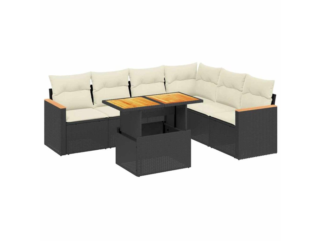 7dílná zahradní sedací souprava s poduškami černá polyratan 3273093