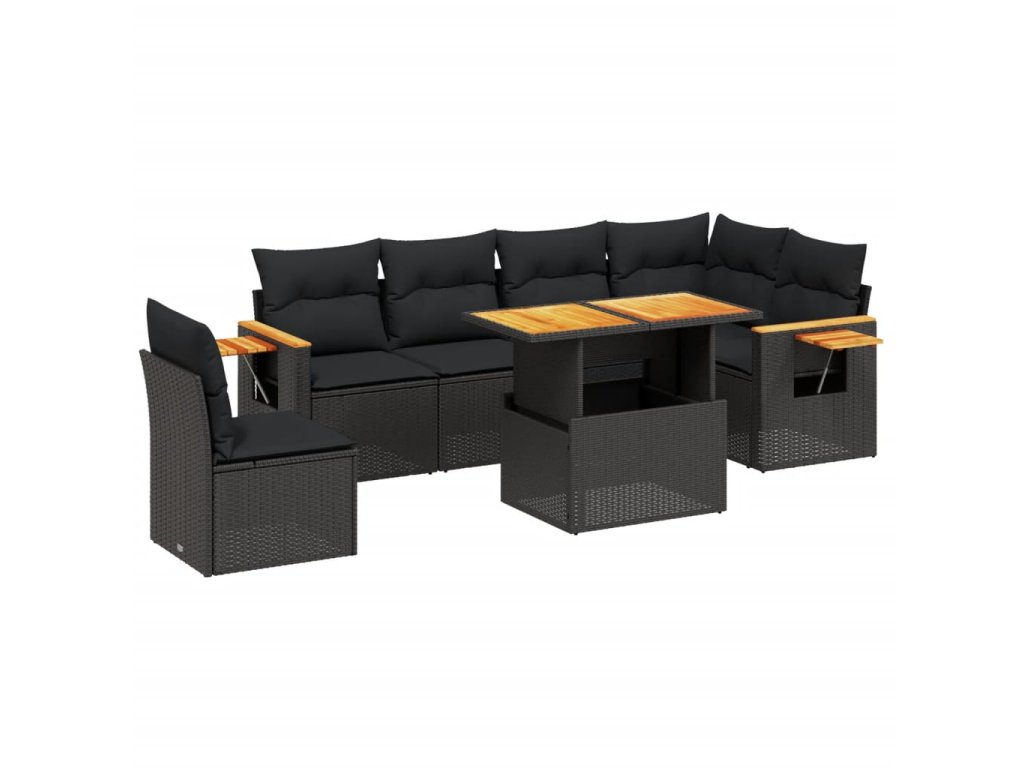 7dílná zahradní sedací souprava s poduškami černá polyratan 3273540