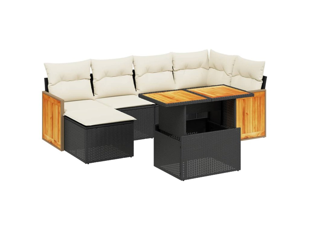 7dílná zahradní sedací souprava s poduškami černá polyratan 3274059