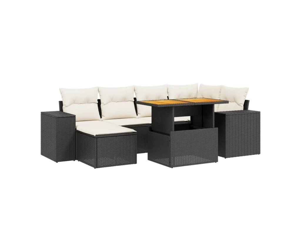 7dílná zahradní sedací souprava s poduškami černá polyratan 3275926