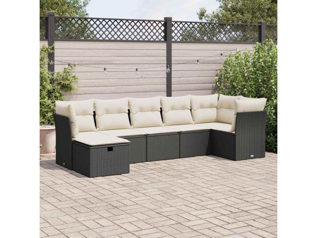 7dílná zahradní sedací souprava s poduškami černá polyratan 3325302