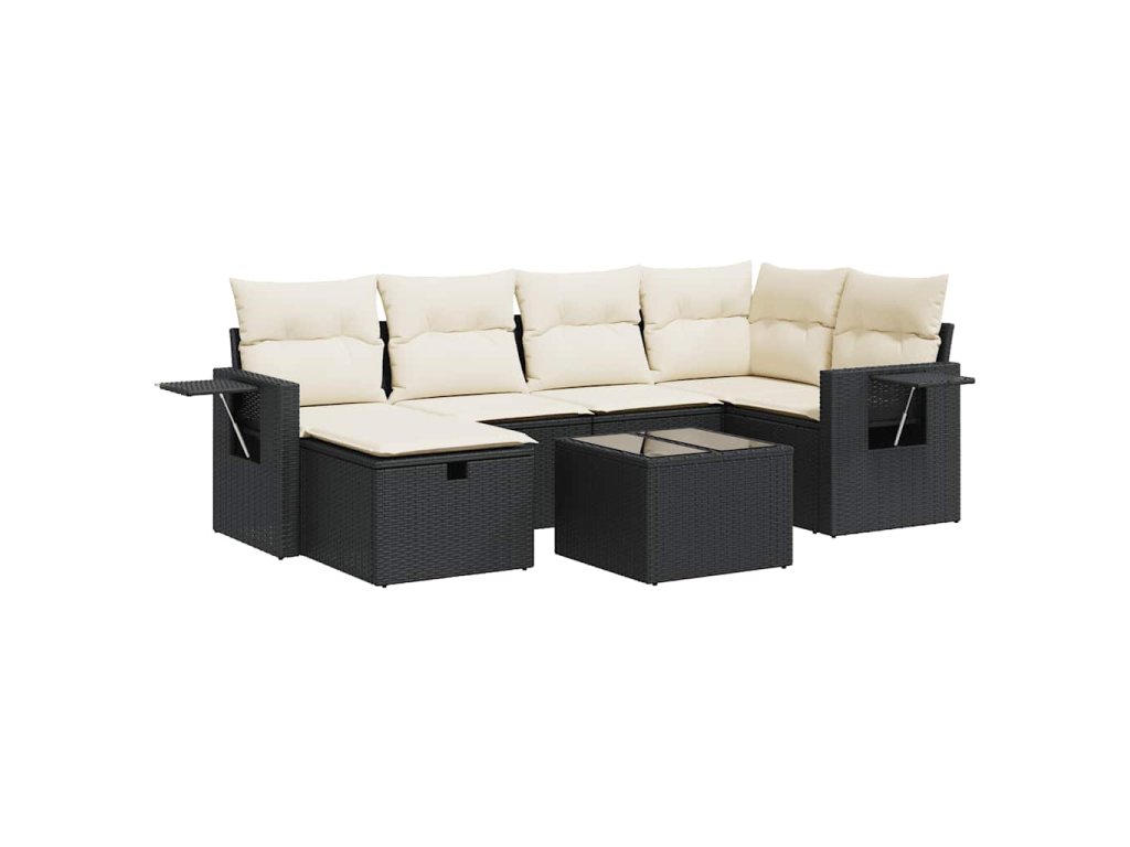 7dílná zahradní sedací souprava s poduškami černá polyratan 3325492