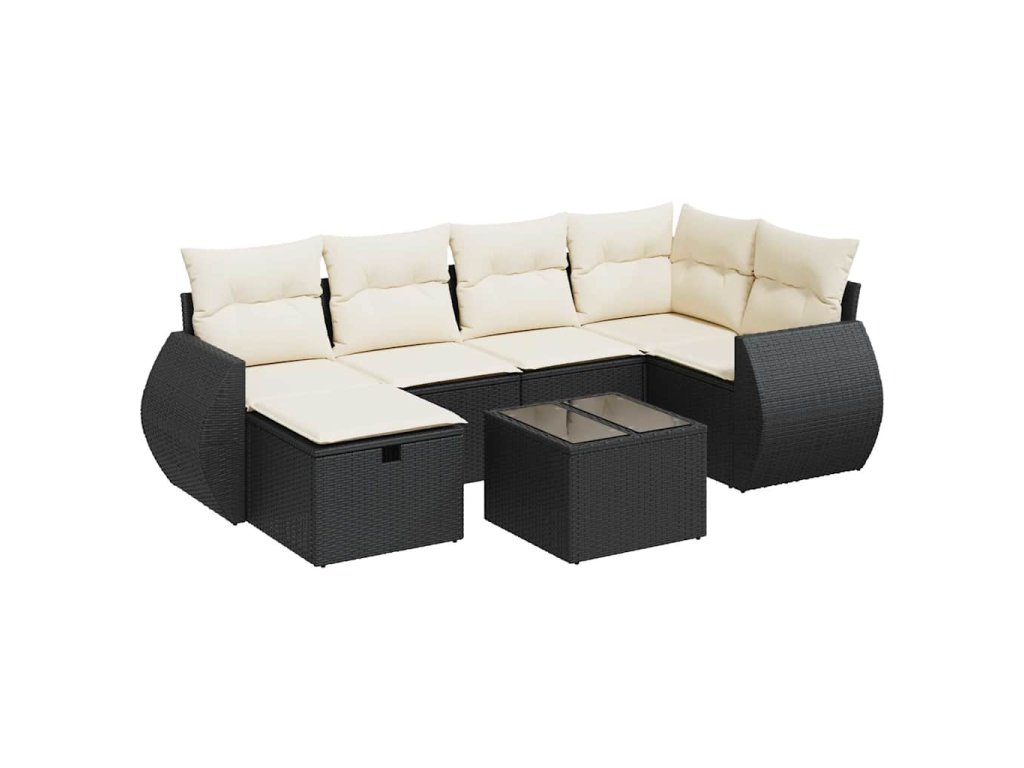 7dílná zahradní sedací souprava s poduškami černá polyratan 3325592