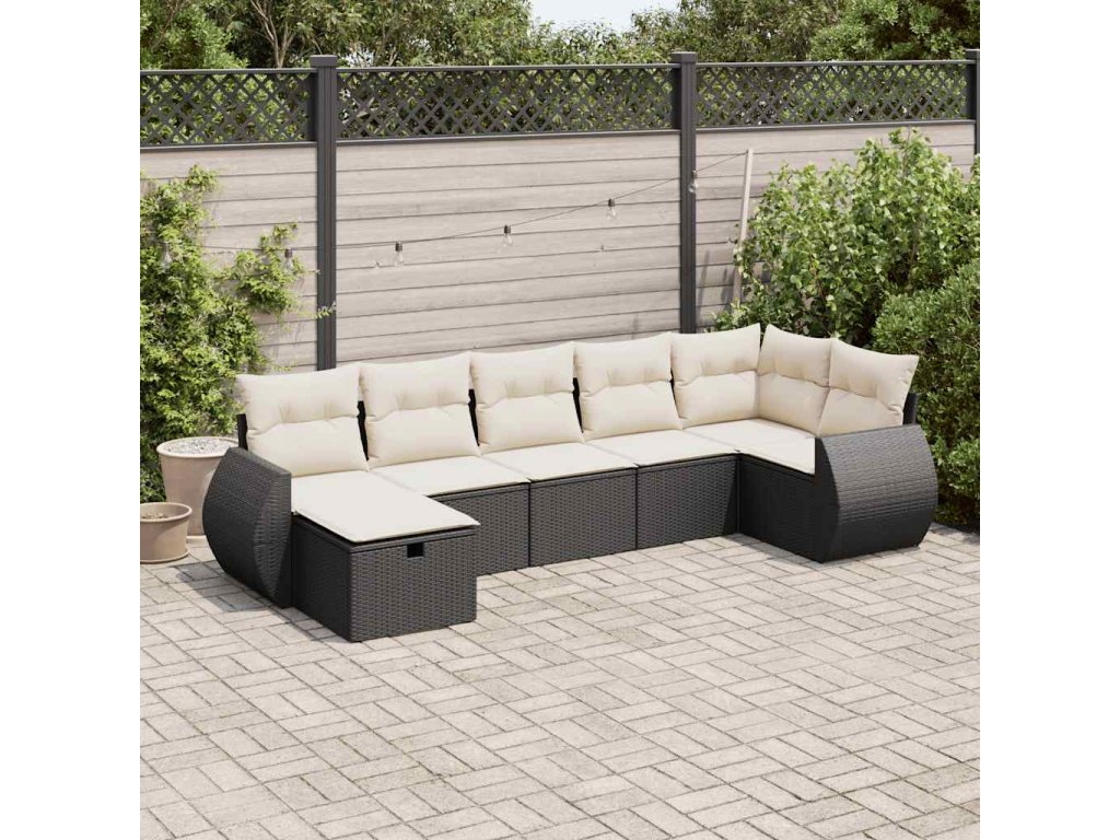 7dílná zahradní sedací souprava s poduškami černá polyratan 3325602