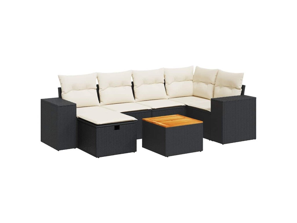 7dílná zahradní sedací souprava s poduškami černá polyratan 3325871