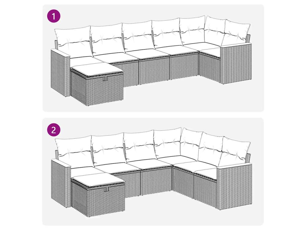 - Modulární design: Tato sada venkovního nábytku se vyznačuje modulární konstrukcí, je tedy zcela flexibilní a lze ji snadno přemisťovat, takže si můžete uspořádat venkovní nábytek dle vašich potřeb.
