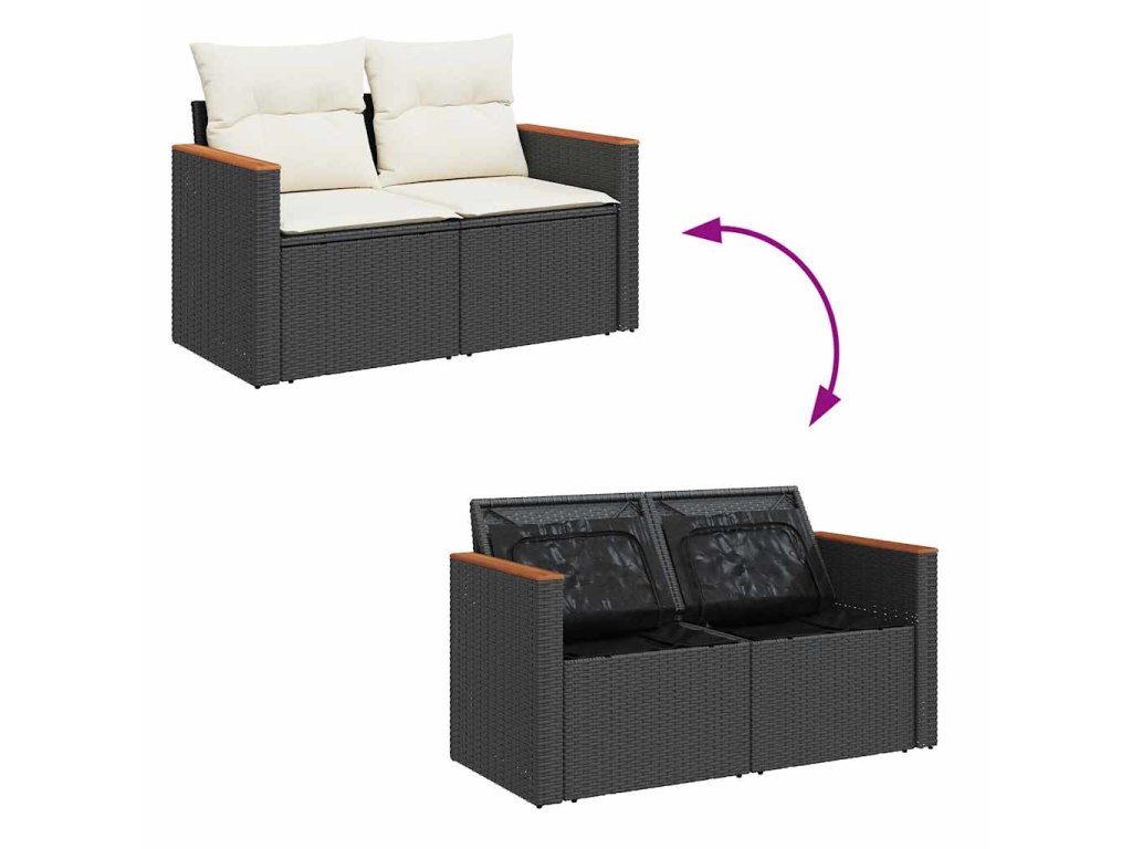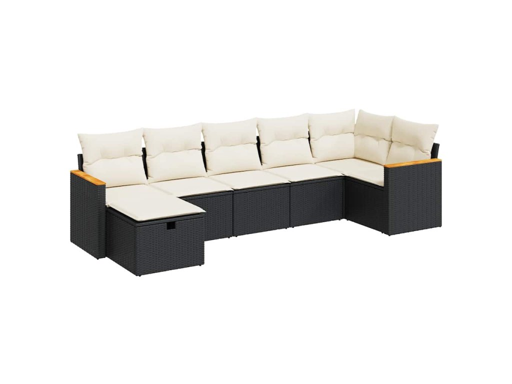 7dílná zahradní sedací souprava s poduškami černá polyratan 3325927