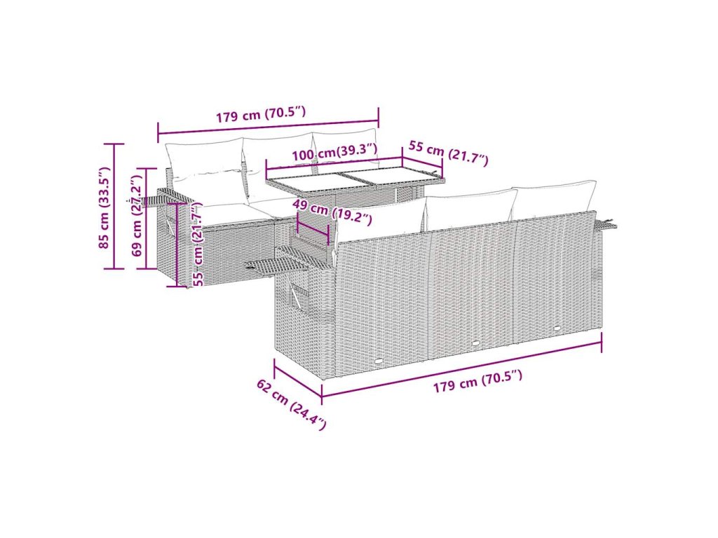 Tato zahradní sedací souprava je dokonalým doplňkem vaší zahrady, terasy nebo dvorku a poskytne vám pohodlné a příjemné místo, kde si můžete povídat s rodinou a přáteli nebo jen tak odpočívat a užívat si pobyt venku.