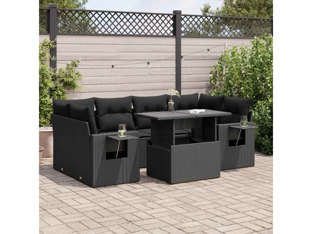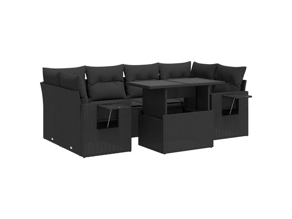 7dílná zahradní sedací souprava s poduškami černá polyratan 3326426