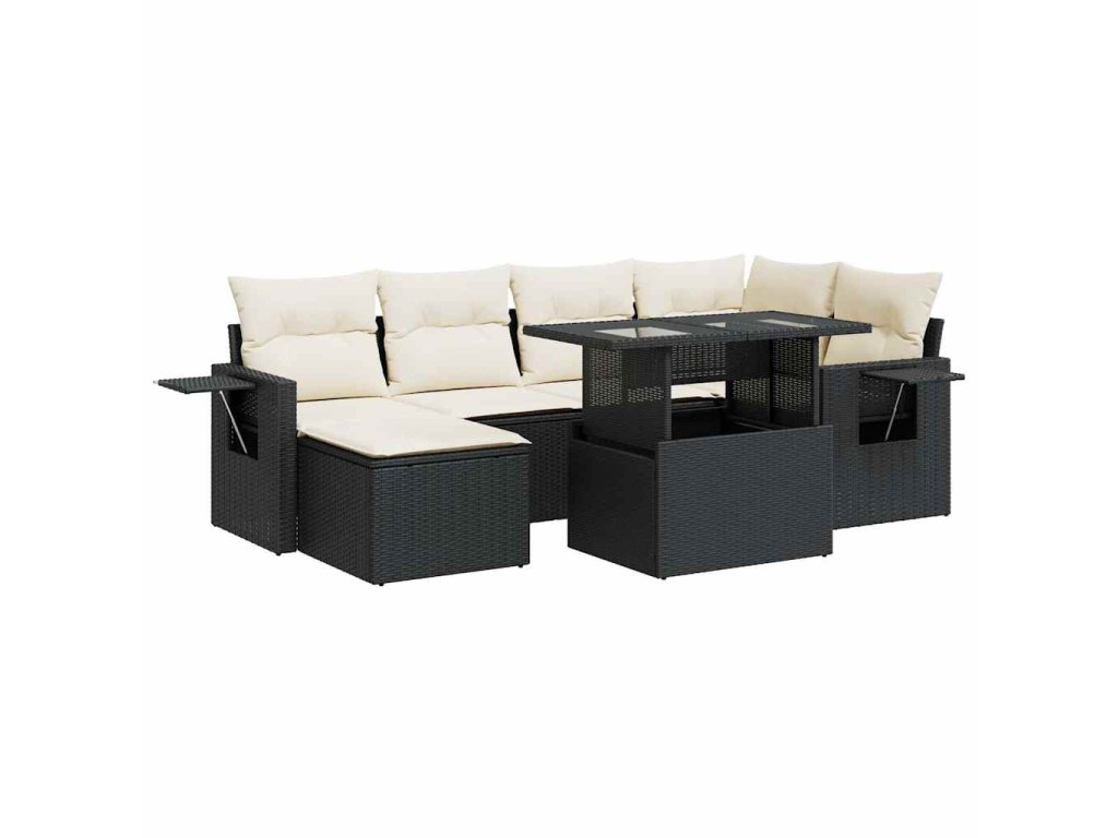 7dílná zahradní sedací souprava s poduškami černá polyratan 3326507