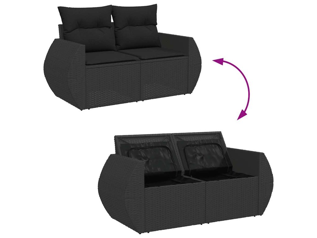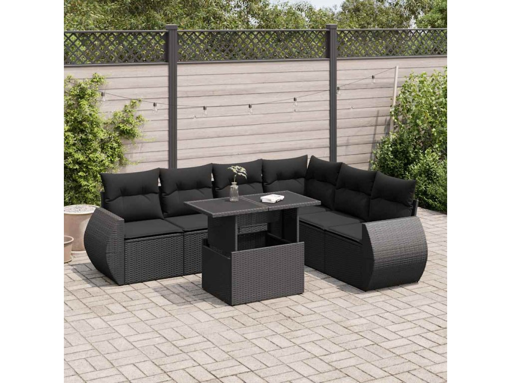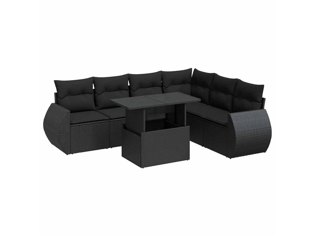 7dílná zahradní sedací souprava s poduškami černá polyratan 3326646