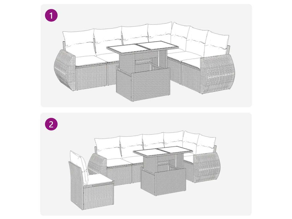 Tato zahradní sedací souprava je dokonalým doplňkem vaší zahrady, terasy nebo dvorku a poskytne vám pohodlné a příjemné místo, kde si můžete povídat s rodinou a přáteli nebo jen tak odpočívat a užívat si pobyt venku.