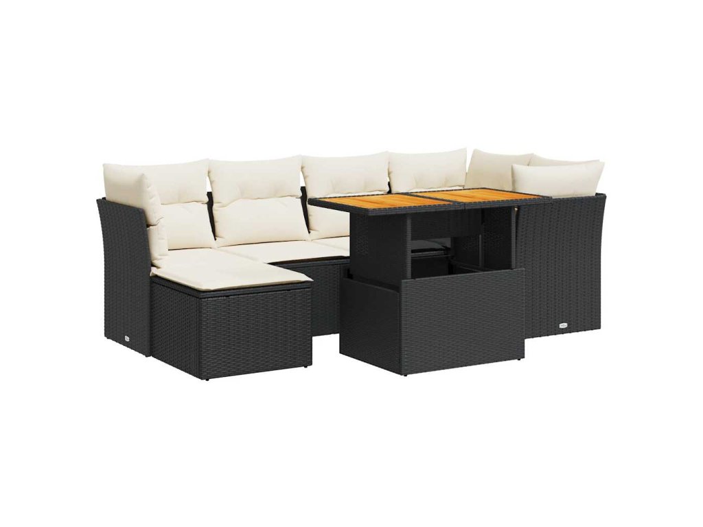 7dílná zahradní sedací souprava s poduškami černá polyratan 3326947