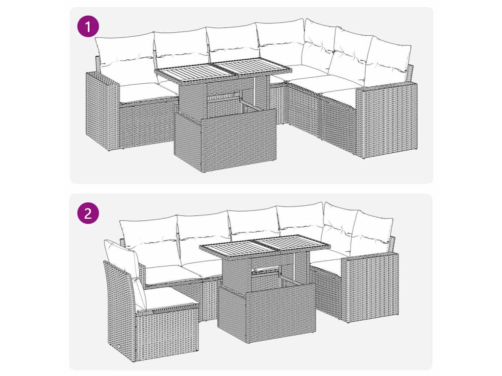 - Modulární design: Tato sada venkovního nábytku se vyznačuje modulární konstrukcí, je tedy zcela flexibilní a lze ji snadno přemisťovat, takže si můžete uspořádat venkovní nábytek dle vašich potřeb.
