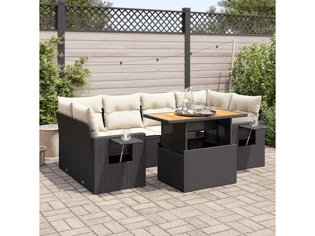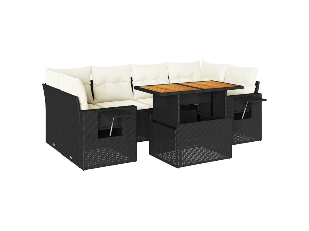 7dílná zahradní sedací souprava s poduškami černá polyratan 3327115