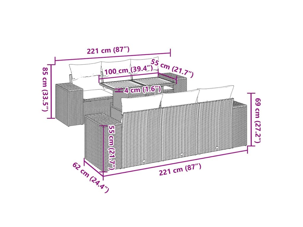 Tato zahradní sedací souprava je dokonalým doplňkem vaší zahrady, terasy nebo dvorku a poskytne vám pohodlné a příjemné místo, kde si můžete povídat s rodinou a přáteli nebo jen tak odpočívat a užívat si pobyt venku.