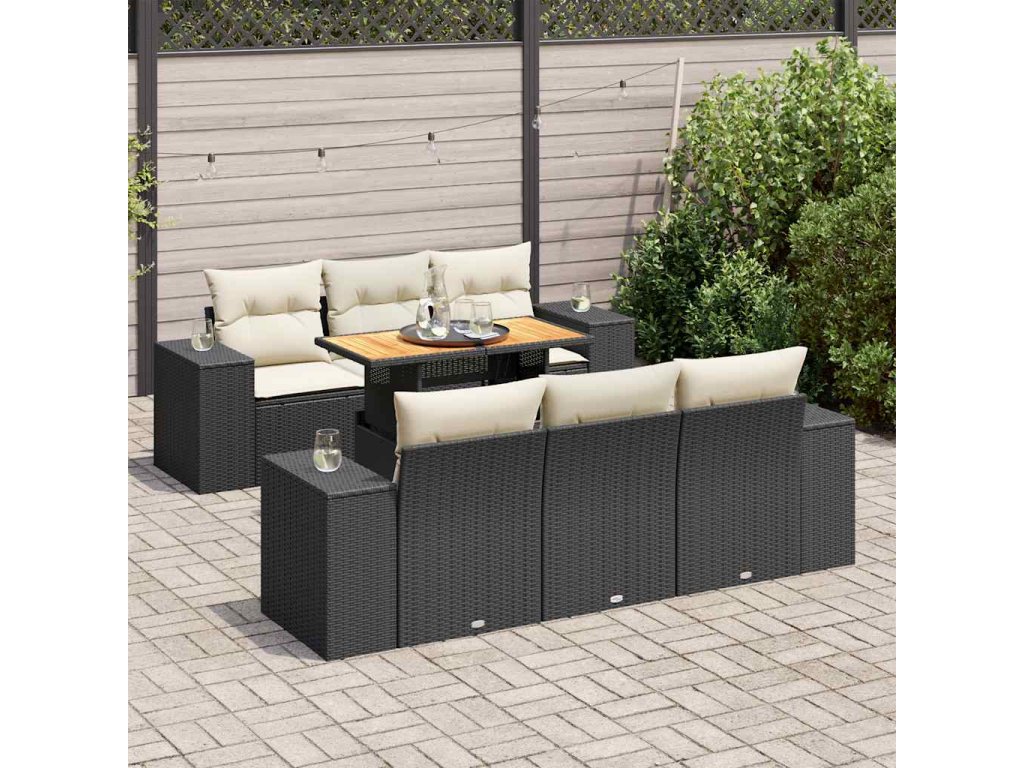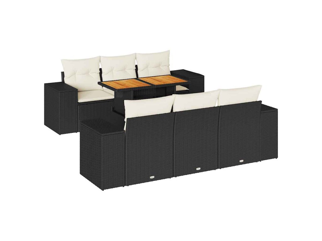 7dílná zahradní sedací souprava s poduškami černá polyratan 3327332
