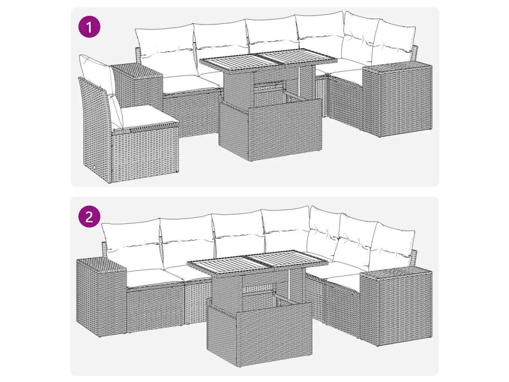 - Modulární design: Tato sada venkovního nábytku se vyznačuje modulární konstrukcí, je tedy zcela flexibilní a lze ji snadno přemisťovat, takže si můžete uspořádat venkovní nábytek dle vašich potřeb.