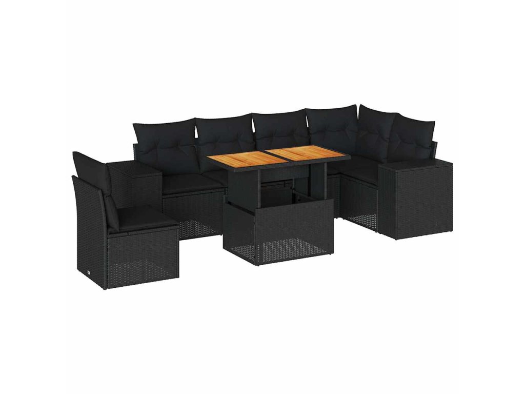 7dílná zahradní sedací souprava s poduškami černá polyratan 3327380