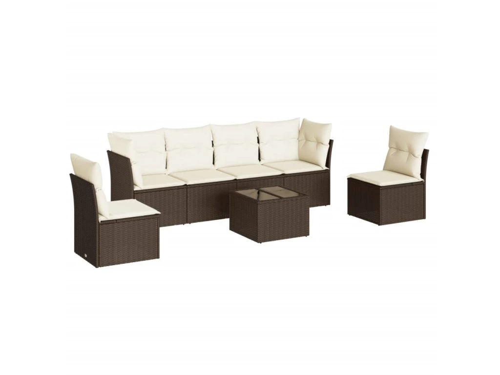 7dílná zahradní sedací souprava s poduškami hnědá polyratan 3217383