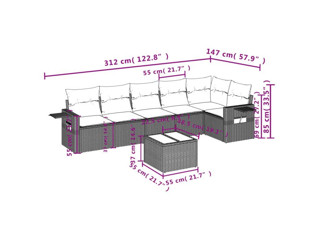 7dílná zahradní sedací souprava s poduškami hnědá polyratan 3220202