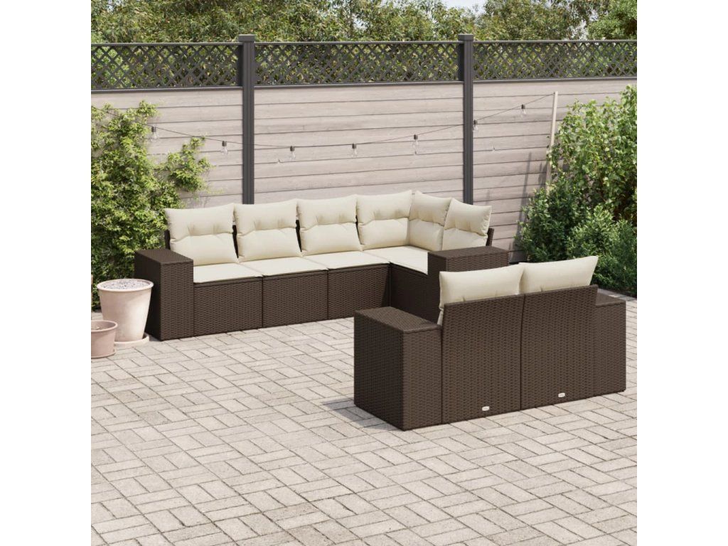 7dílná zahradní sedací souprava s poduškami hnědá polyratan 3222812