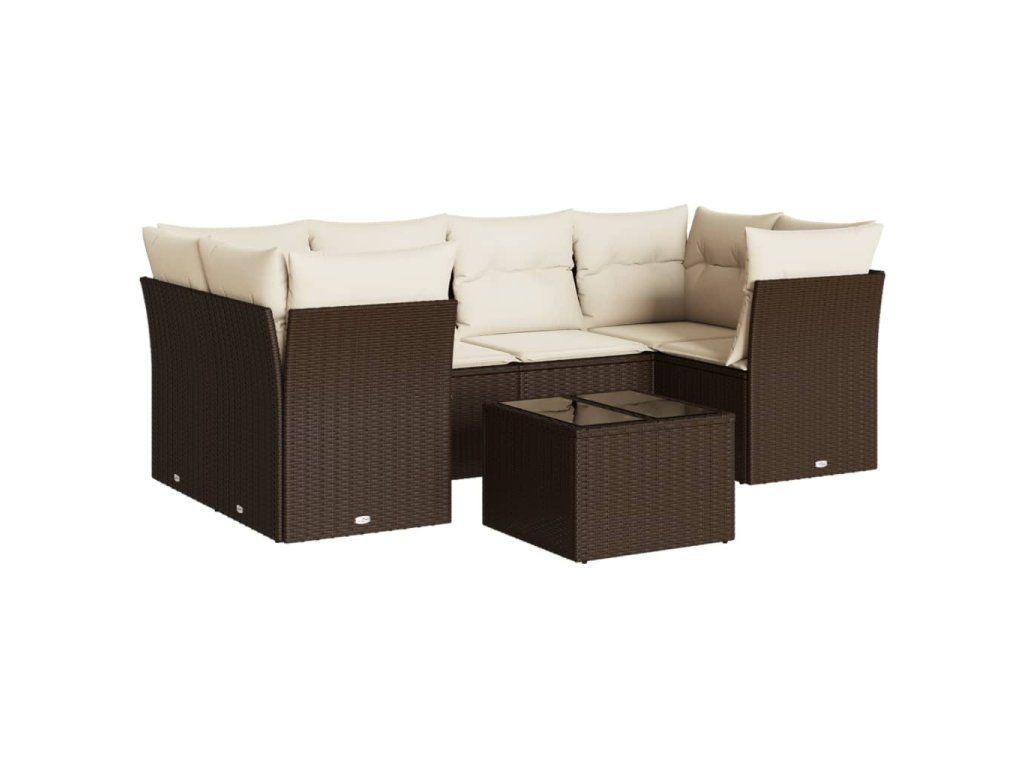 7dílná zahradní sedací souprava s poduškami hnědá polyratan 3249112