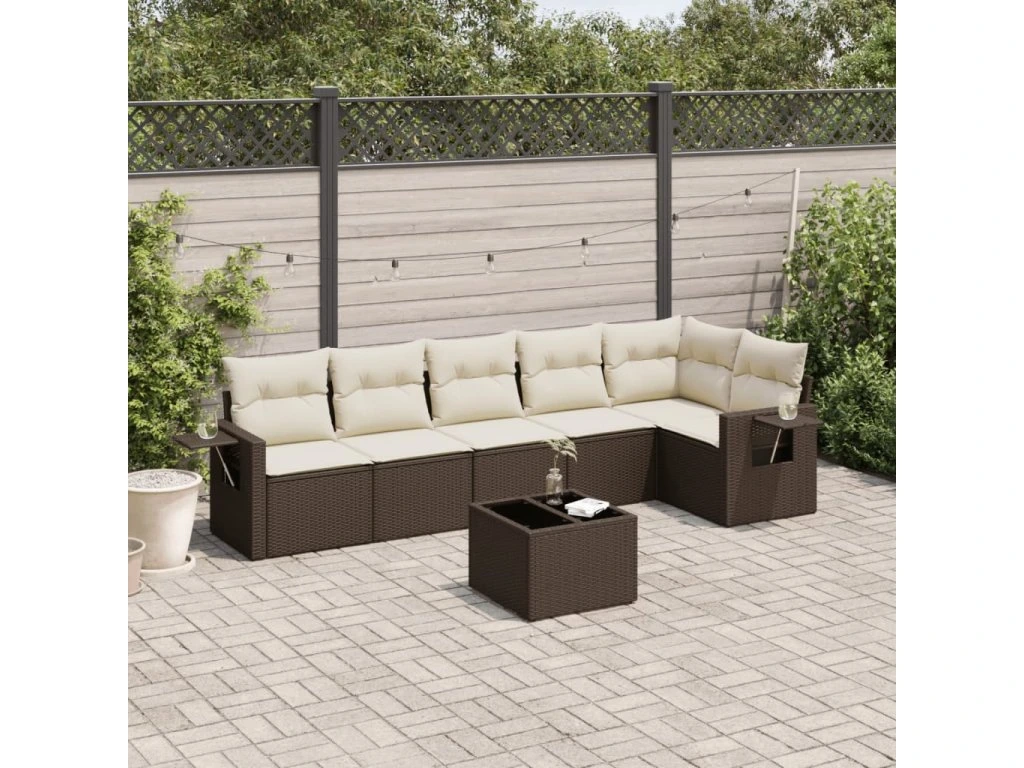 7dílná zahradní sedací souprava s poduškami hnědá polyratan 3252540