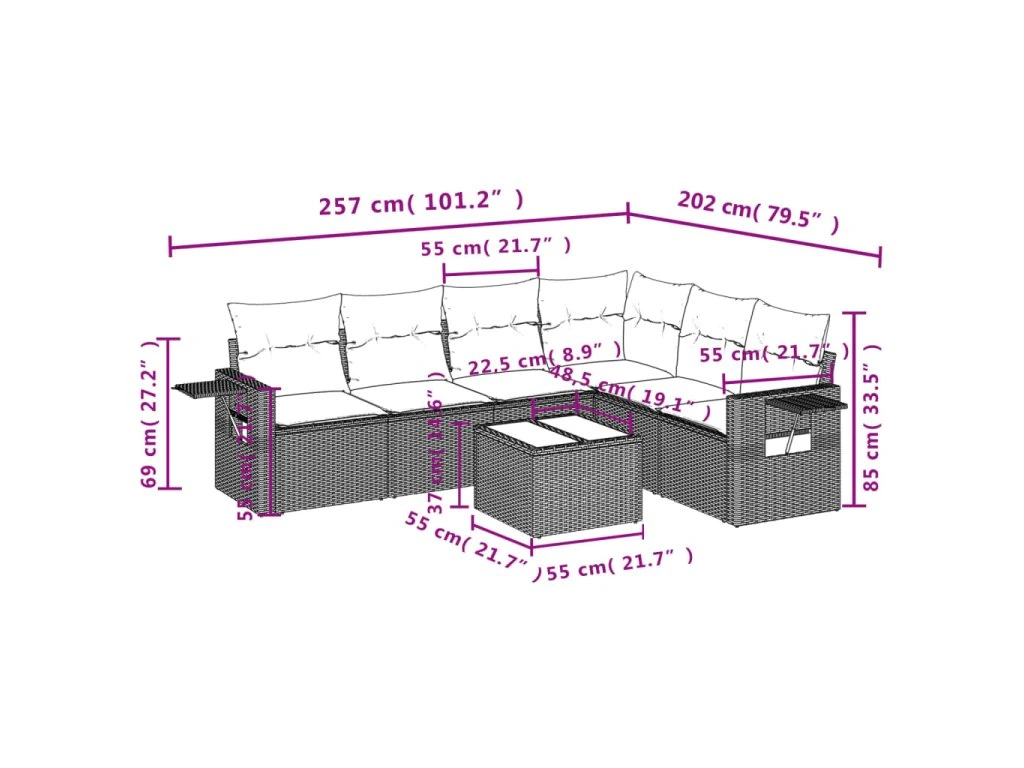 Tato zahradní sedací souprava je dokonalým doplňkem vaší zahrady, terasy nebo dvorku a poskytne vám pohodlné a příjemné místo, kde si můžete povídat s rodinou a přáteli nebo jen tak odpočívat a užívat si pobyt venku.