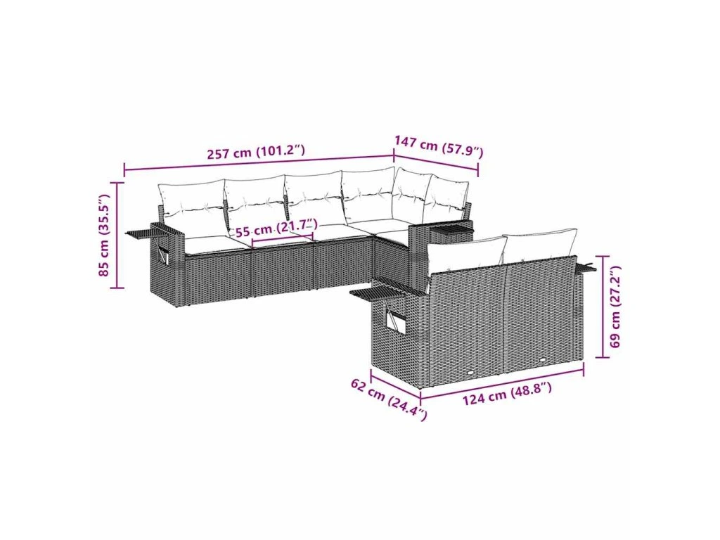 Tato zahradní sedací souprava je dokonalým doplňkem vaší zahrady, terasy nebo dvorku a poskytne vám pohodlné a příjemné místo, kde si můžete povídat s rodinou a přáteli nebo jen tak odpočívat a užívat si pobyt venku.