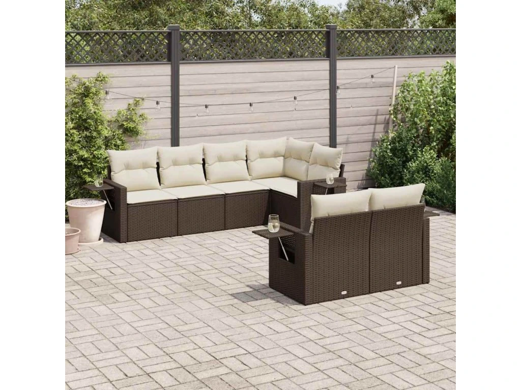 7dílná zahradní sedací souprava s poduškami hnědá polyratan 3252750