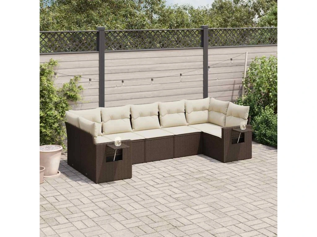 7dílná zahradní sedací souprava s poduškami hnědá polyratan 3252930