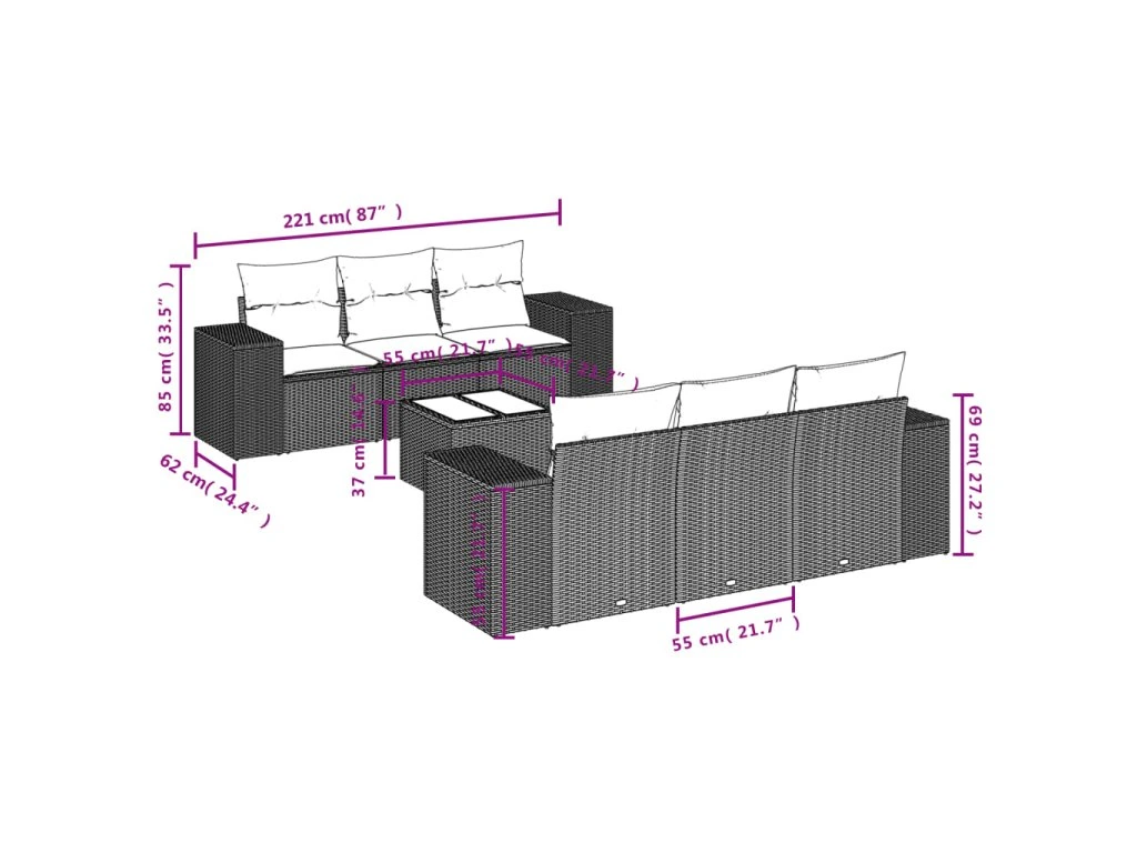 Tato zahradní sedací souprava je dokonalým doplňkem vaší zahrady, terasy nebo dvorku a poskytne vám pohodlné a příjemné místo, kde si můžete povídat s rodinou a přáteli nebo jen tak odpočívat a užívat si pobyt venku.
