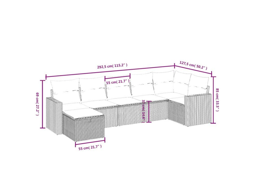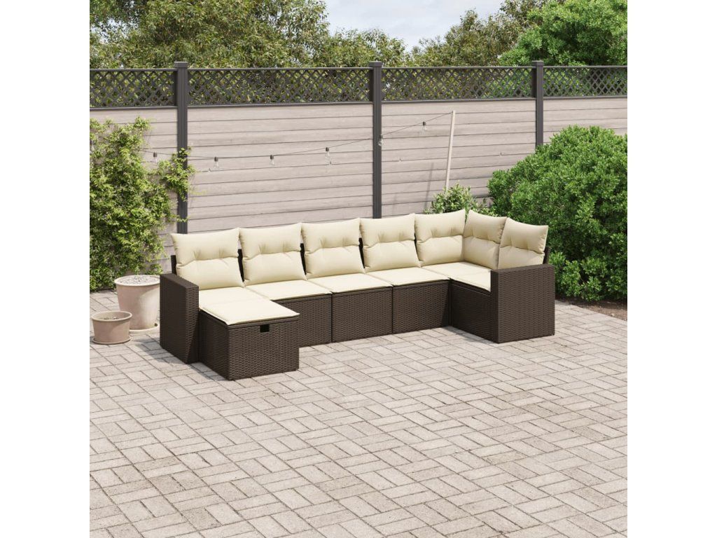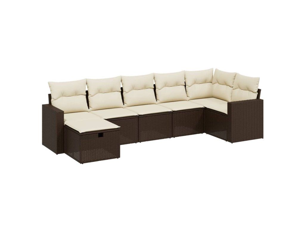 7dílná zahradní sedací souprava s poduškami hnědá polyratan 3263509