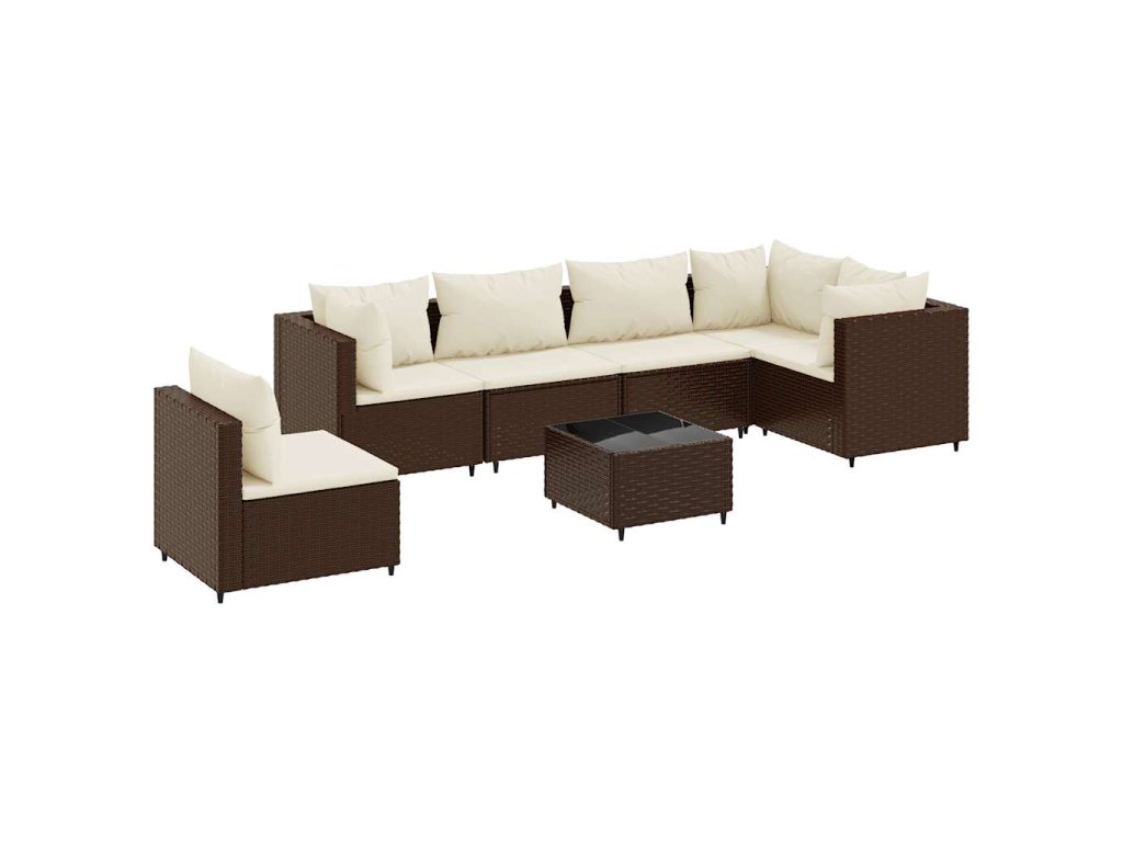 7dílná zahradní sedací souprava s poduškami hnědá polyratan 3308177