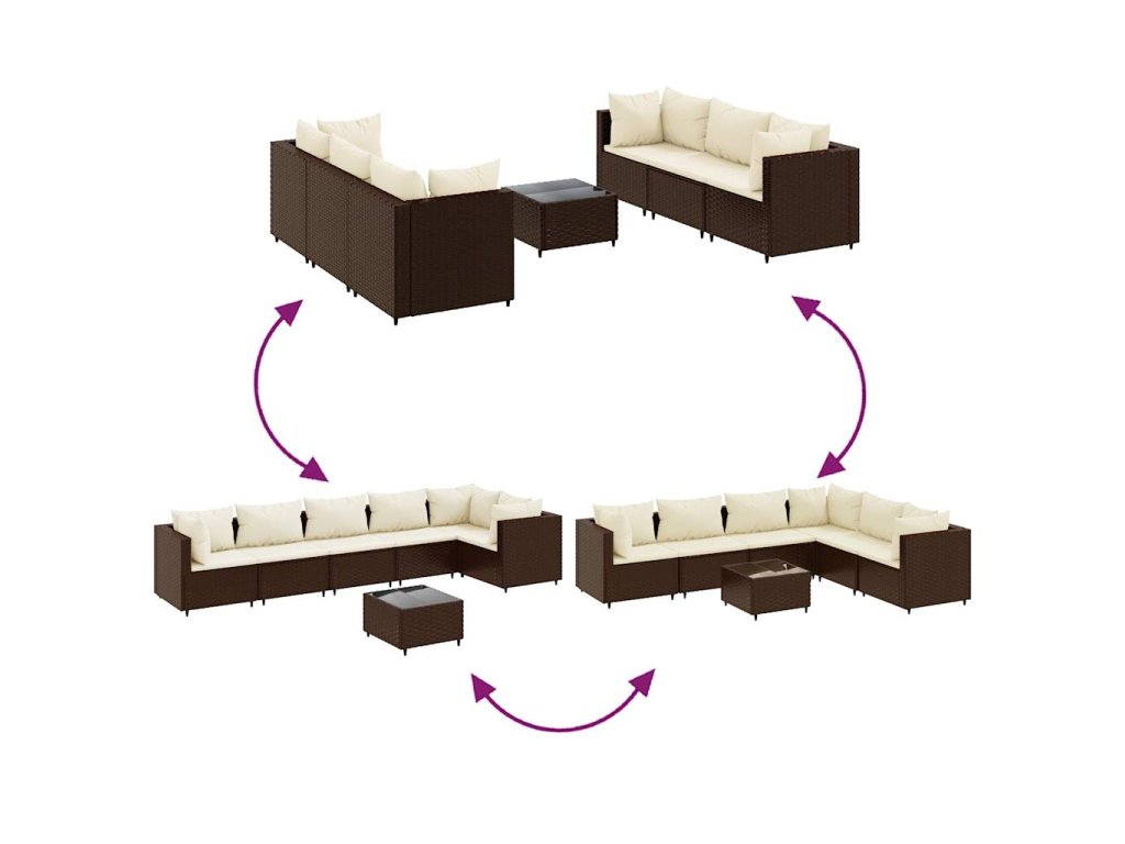 - Modulární design: Tato sada venkovního nábytku se vyznačuje modulární konstrukcí, je tedy zcela flexibilní a lze ji snadno přemisťovat, takže si můžete uspořádat venkovní nábytek dle vašich potřeb.
