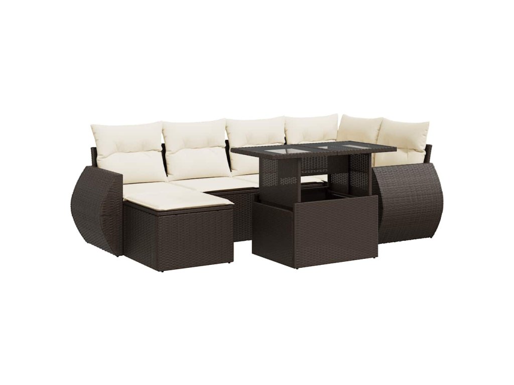 7dílná zahradní sedací souprava s poduškami hnědá polyratan 3326674