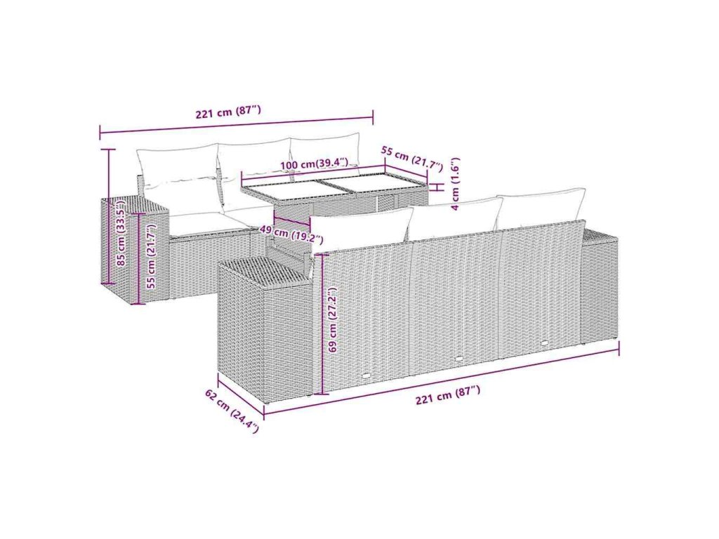 Tato zahradní sedací souprava je dokonalým doplňkem vaší zahrady, terasy nebo dvorku a poskytne vám pohodlné a příjemné místo, kde si můžete povídat s rodinou a přáteli nebo jen tak odpočívat a užívat si pobyt venku.