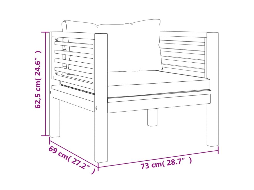 - Rozměry rohové pohovky: 69 x 69 x 62,5 cm (Š x H x V)