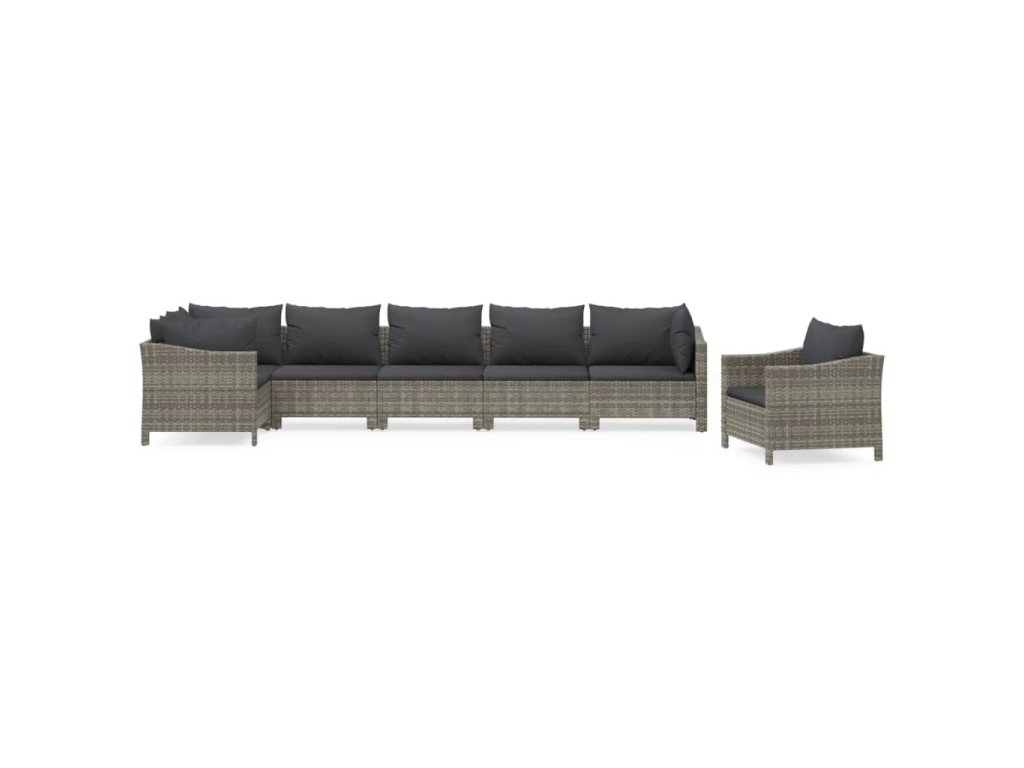 7dílná zahradní sedací souprava s poduškami šedá polyratan 3187284