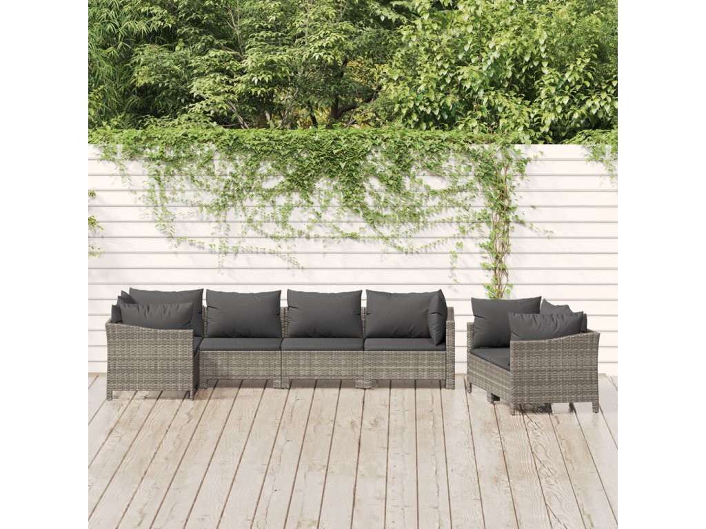 7dílná zahradní sedací souprava s poduškami šedá polyratan 3187288