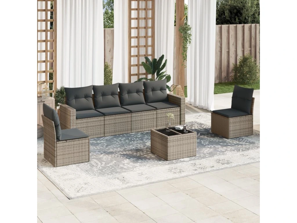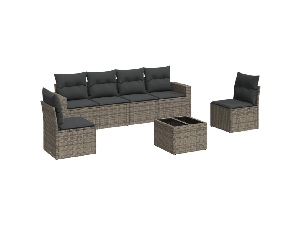 7dílná zahradní sedací souprava s poduškami šedá polyratan 3218810