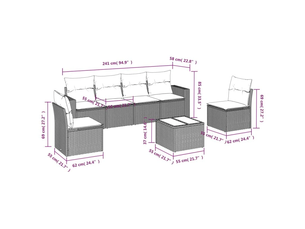Tato zahradní sedací souprava je dokonalým doplňkem vaší zahrady, terasy nebo dvorku a poskytne vám pohodlné a příjemné místo, kde si můžete povídat s rodinou a přáteli nebo jen tak odpočívat a užívat si pobyt venku.