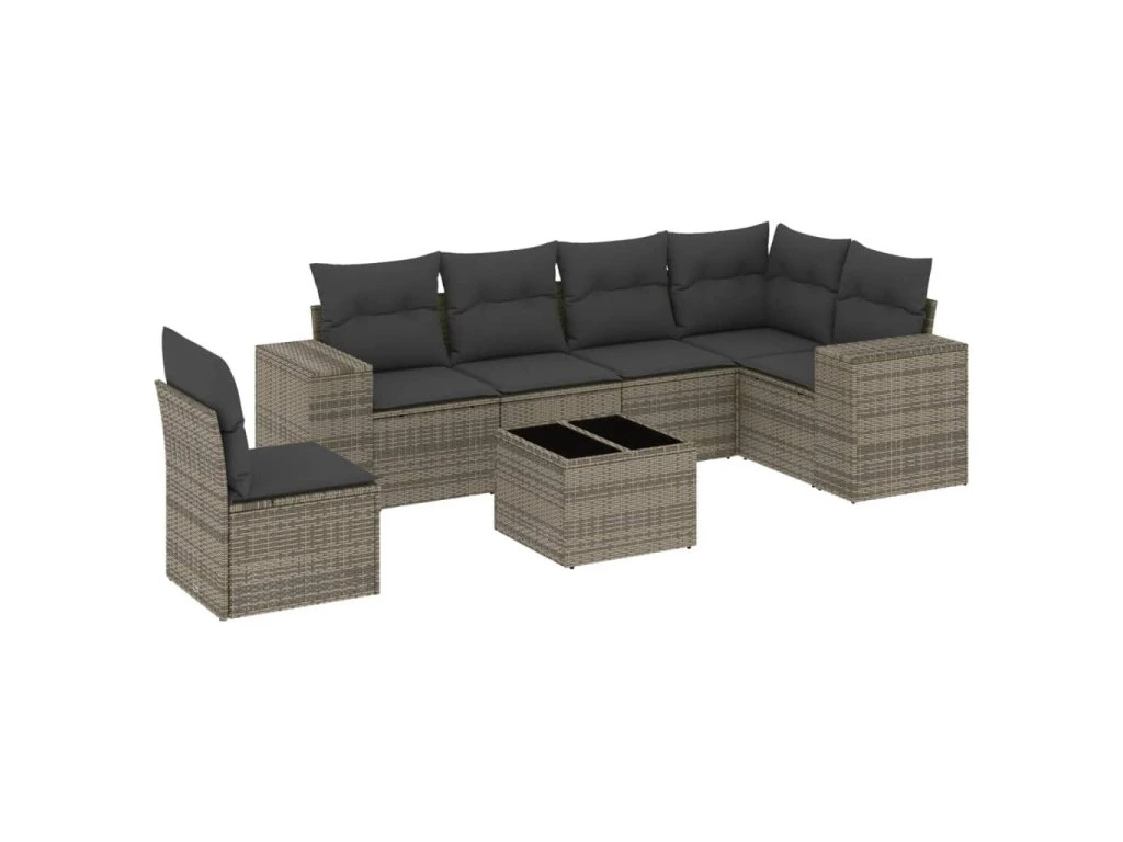 7dílná zahradní sedací souprava s poduškami šedá polyratan 3222639