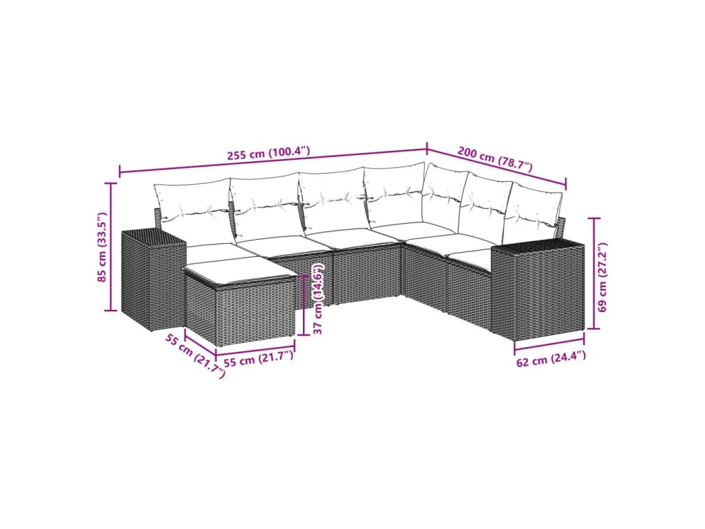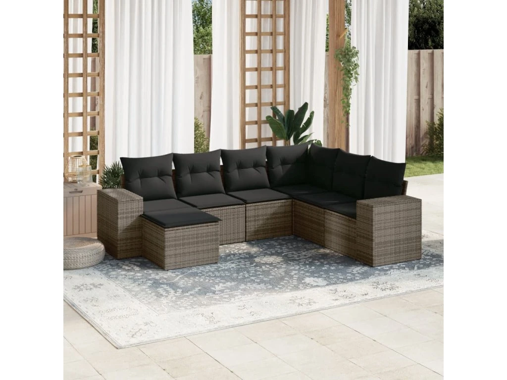 7dílná zahradní sedací souprava s poduškami šedá polyratan 3222899